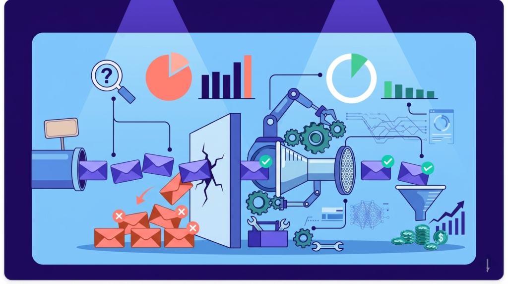 Modern spam filters use machine learning models trained on billions of emails and the actions recipients take after receiving them. The system is constantly learning which combinations of language, behavior, and infrastructure correlate with unwanted or ignored email.